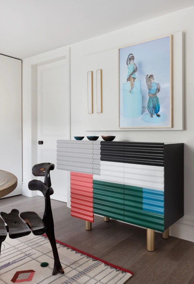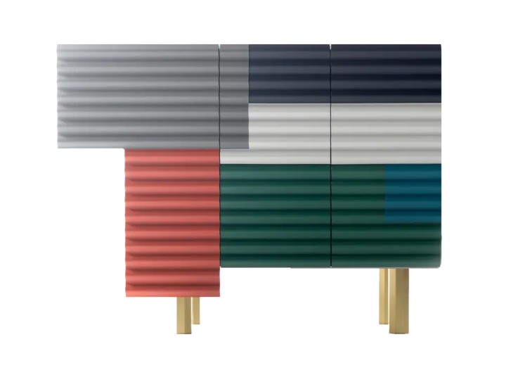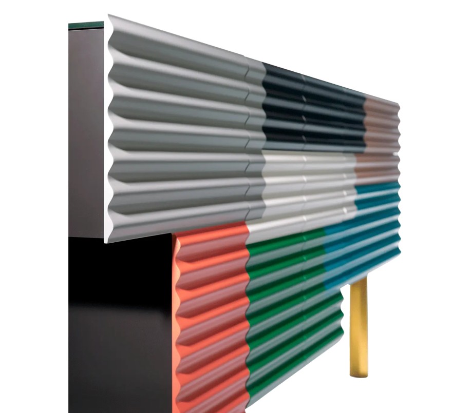 Komoda čerpá inspiraci z improvizovaných přístřešků ze vlnitého plechu a plastu, které lze vidět v různých koutech světa.