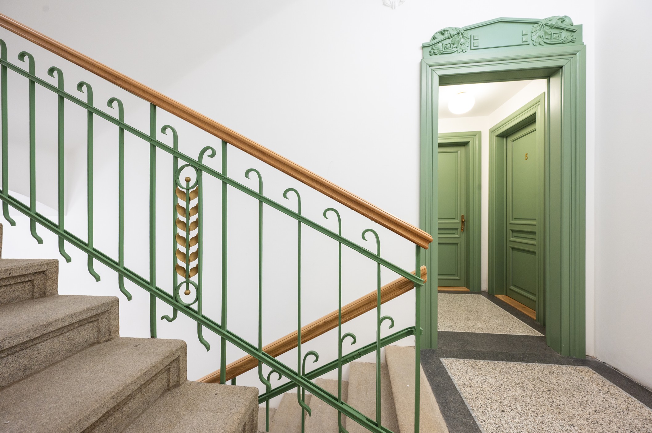 Jedním z hlavních principů rekonstrukce bylo ponechat autentické prvky a doplnit je soudobými materiály, které působí přirozeně a nepřebíjejí atmosféru domu. „Při návrhu moderního interiéru do historické budovy je zásadní respektovat původní architektonické detaily a vyvarovat se zásahů, které by narušily prostorovou nebo estetickou kontinuitu – například do fasád, schodišť či členění interiéru. Naopak je nutné držet principy harmonické kompozice, kde soudobé materiály, barevné akcenty a vylepšené dispozice doplňují historickou strukturu a propojují minulost se současností,“ popisuje Aneta Rybníčková z KYZLINK ARCHITECTS.