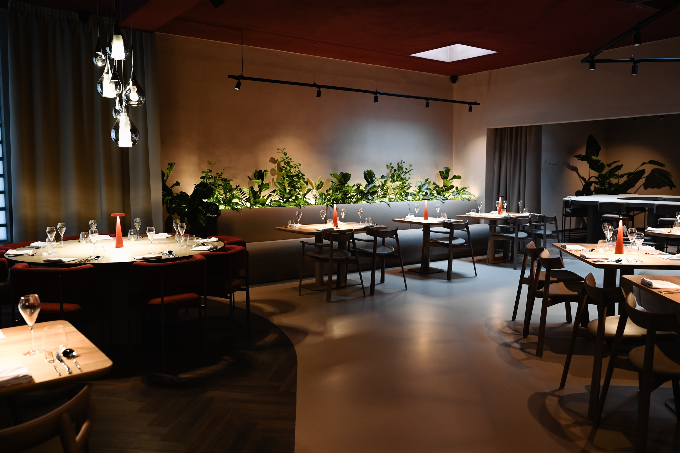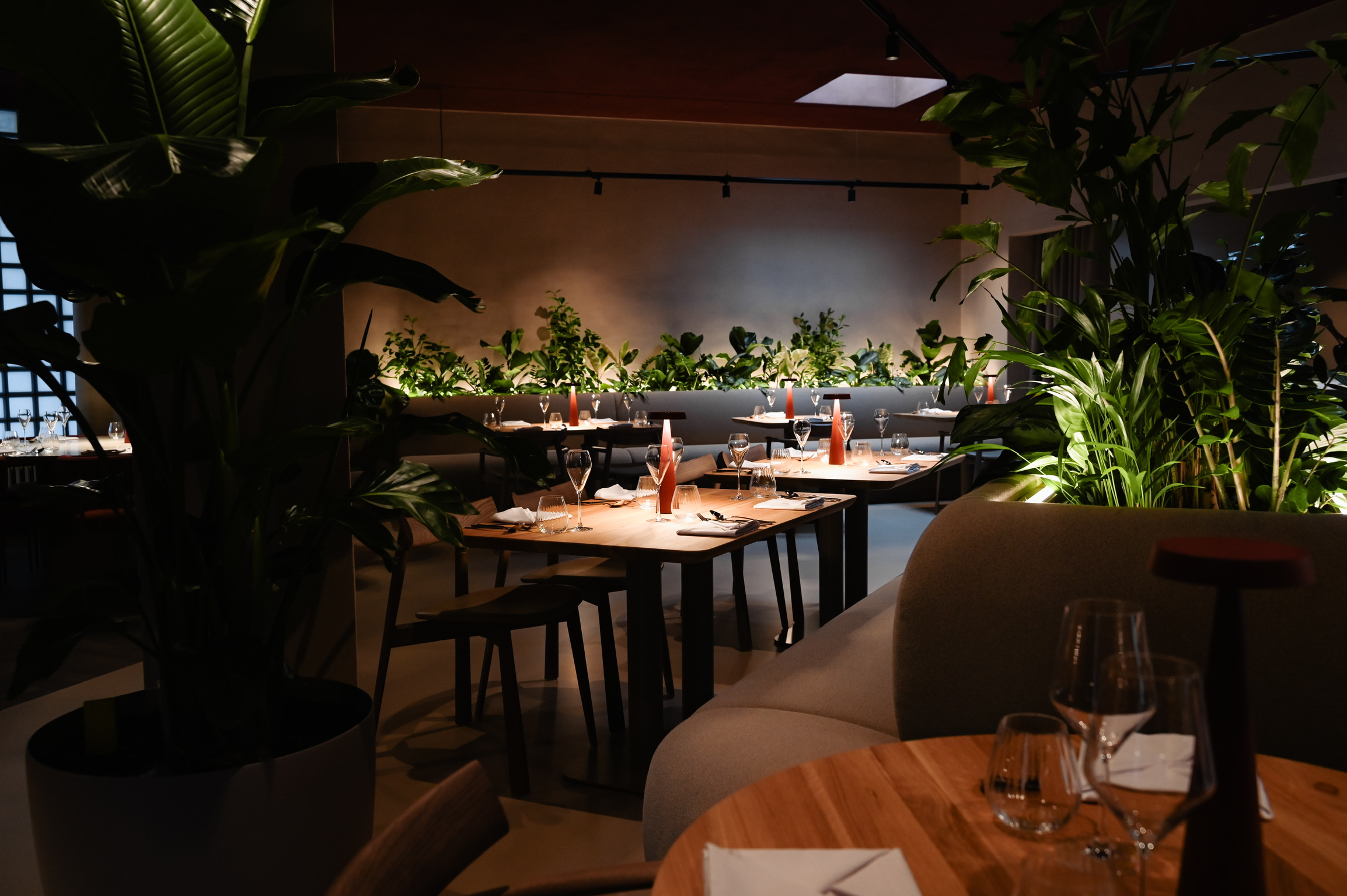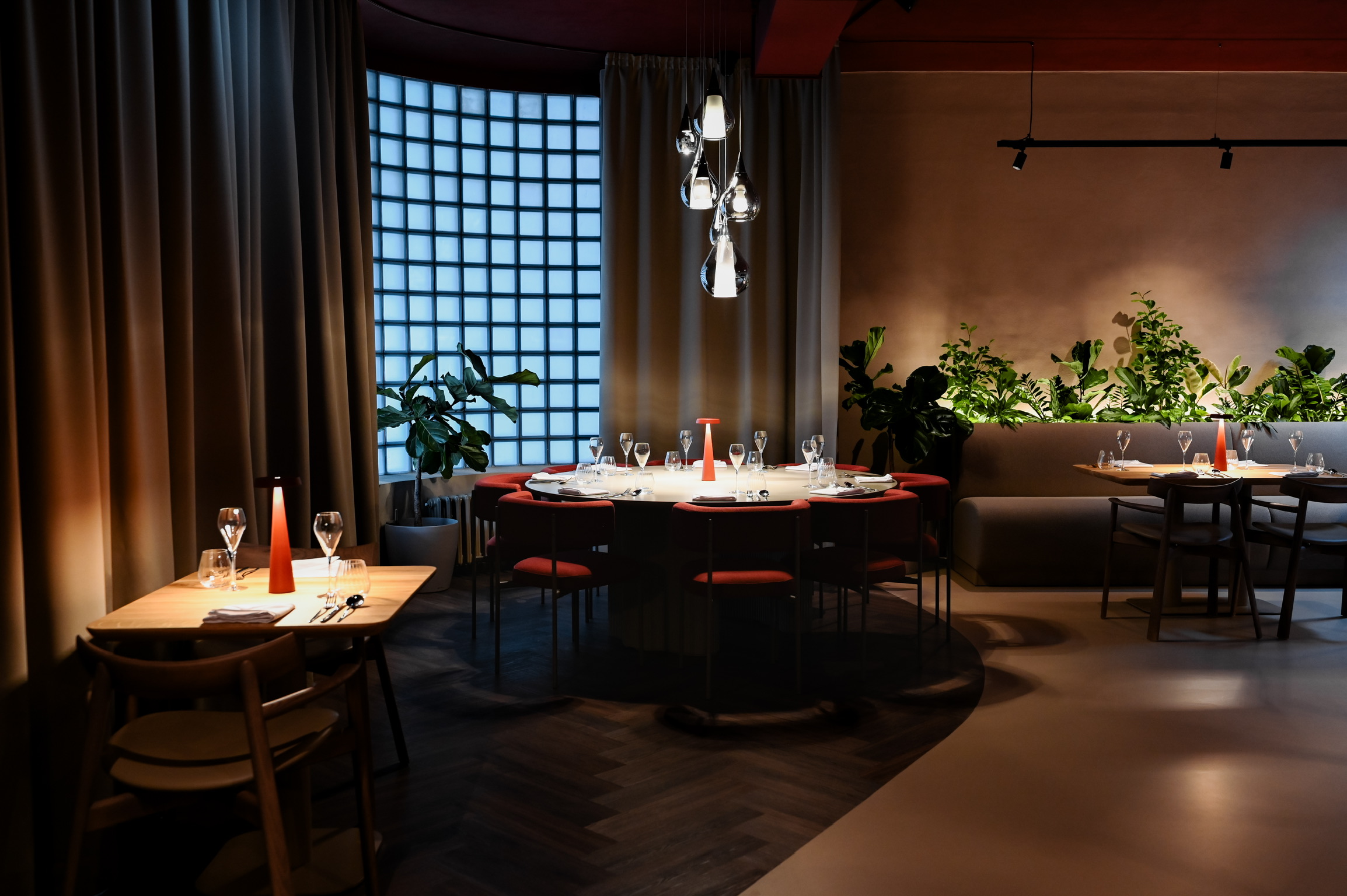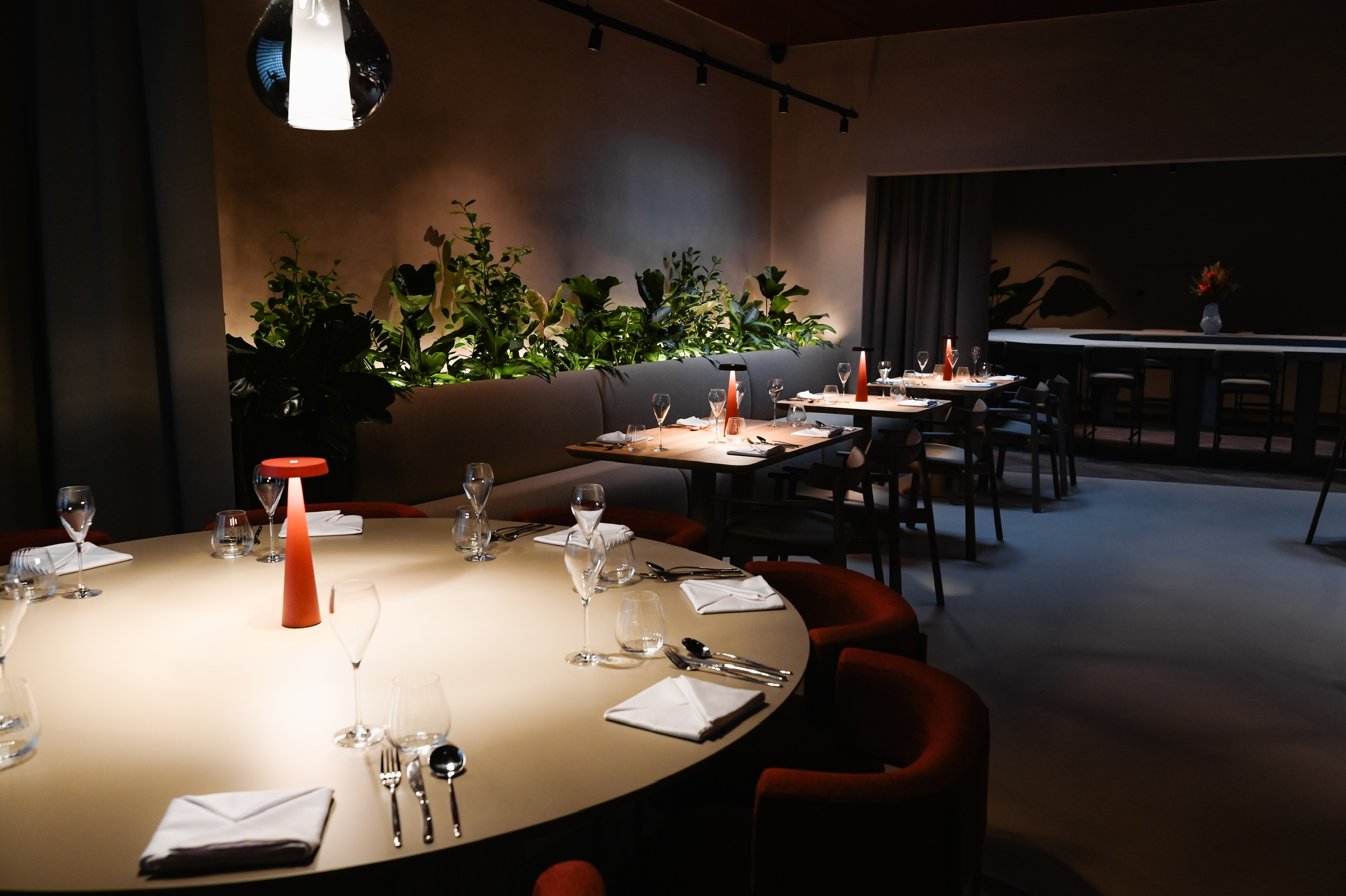 Interiér je členěn do několika zón reagujících na různé potřeby hostů – od intimních stolů přes společné lavice až po výrazný velký stůl ve tvaru U, který slouží pro kurzy, školení nebo komunitní sezení. Díky svému tvaru a umístění podporuje přirozenou interakci a sdílení – ideální pro ty, kdo chtějí jídlo zažít jako společenskou událost.