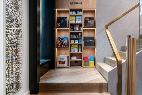 Naše společnost zde zajišťovala kompletní realizaci interiéru, od výroby atypických prvků až po instalaci prezentačních ploch s přidanou akustickou funkcí. Cílem bylo vytvořit prostředí, které nejen skvěle zní, ale také působí harmonicky a vizuálně vyváženě.