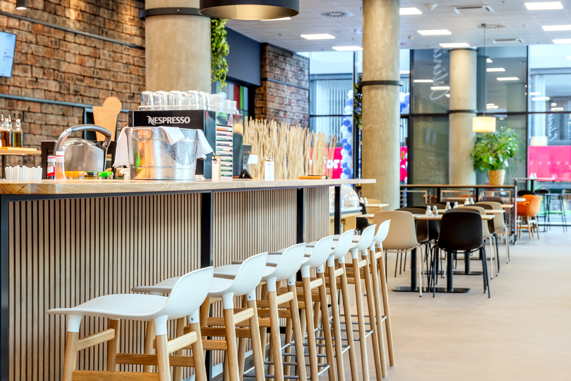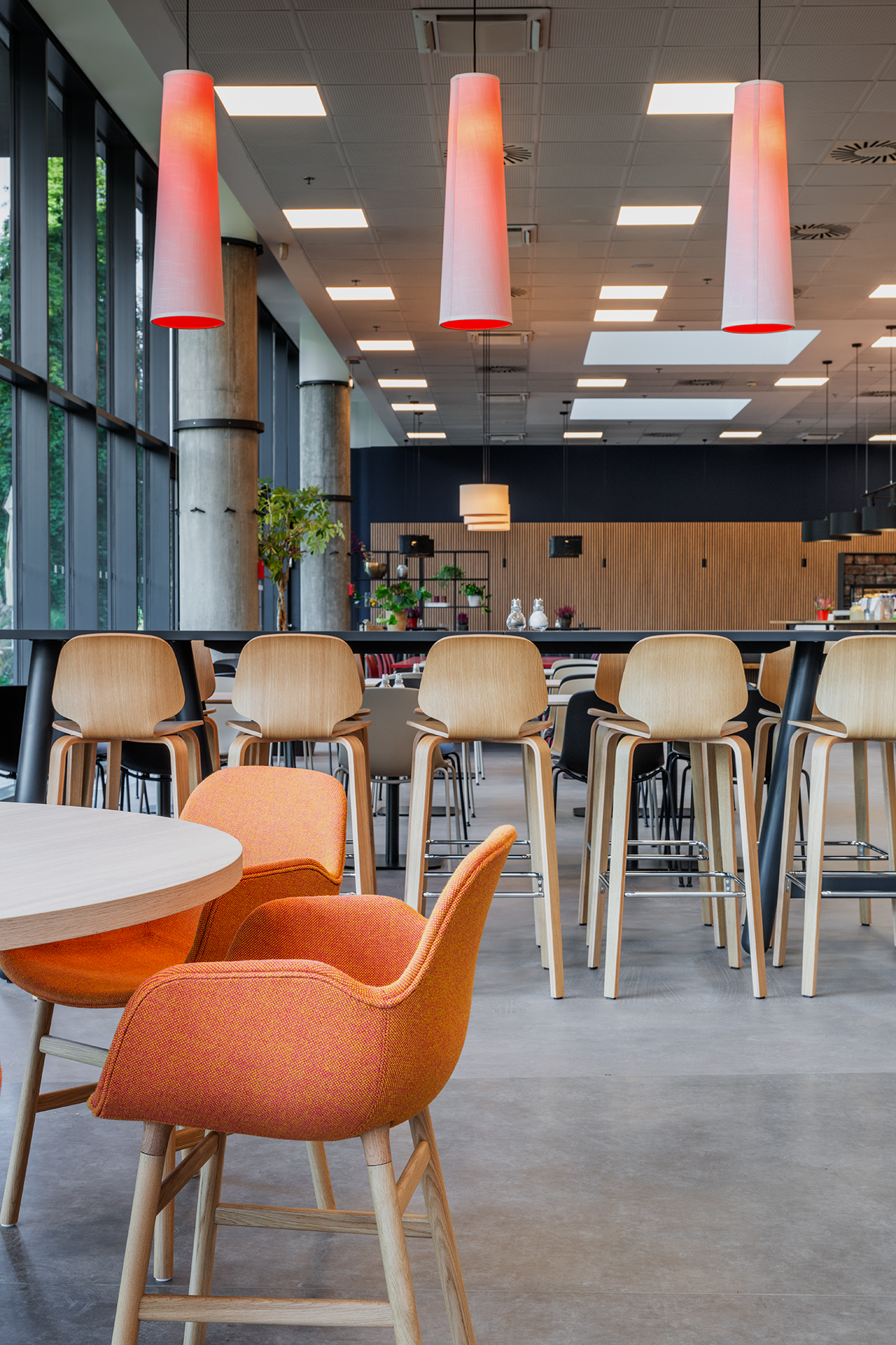 Na projektu jsme se podíleli dodávkou designového nábytku od značek jako Normann Copenhagen a Infiniti, doplněných o atypické prvky na míru – lavice, stoly i barové stoly, které přesně odpovídají potřebám prostoru i charakteru celého konceptu.
